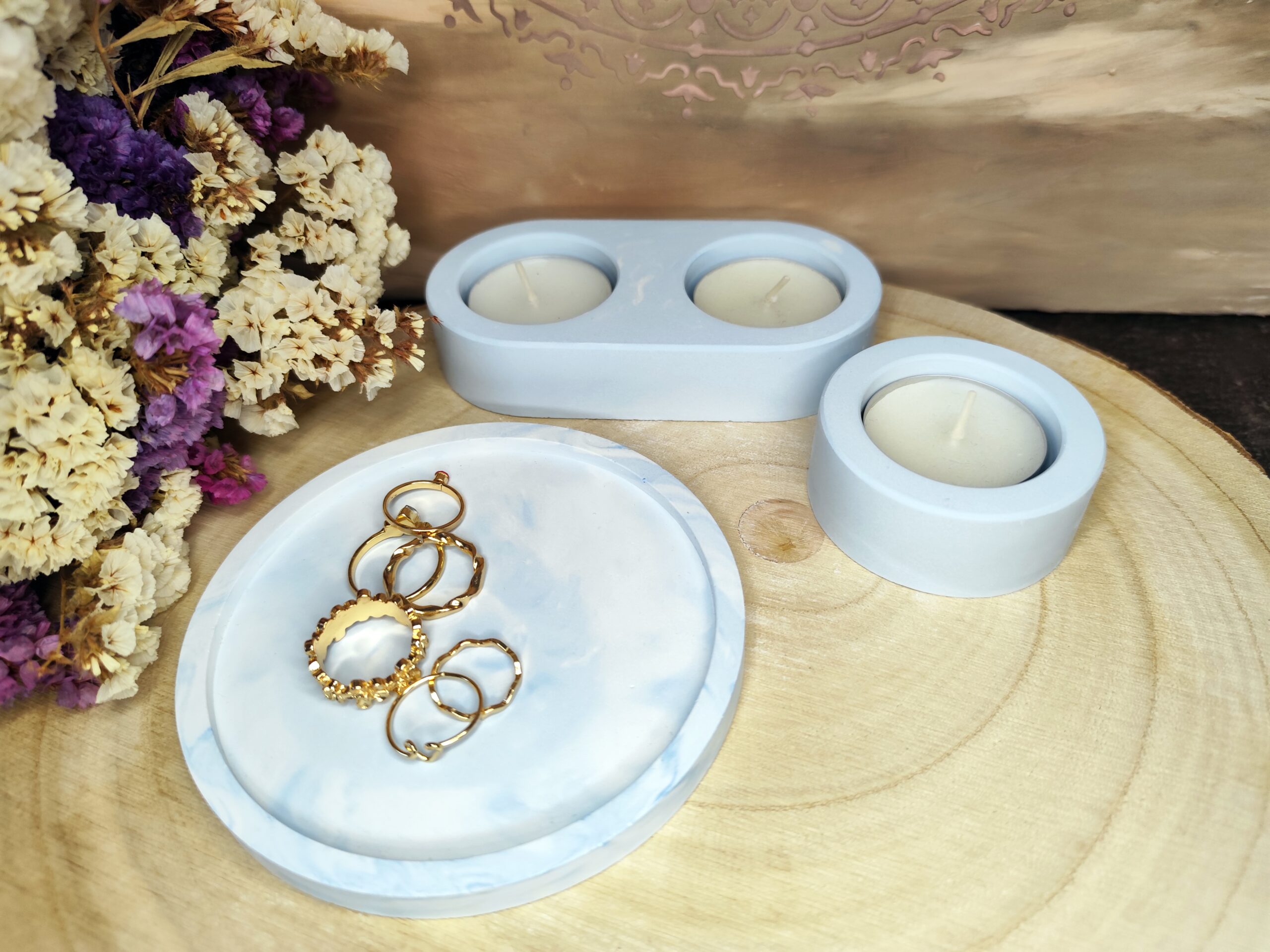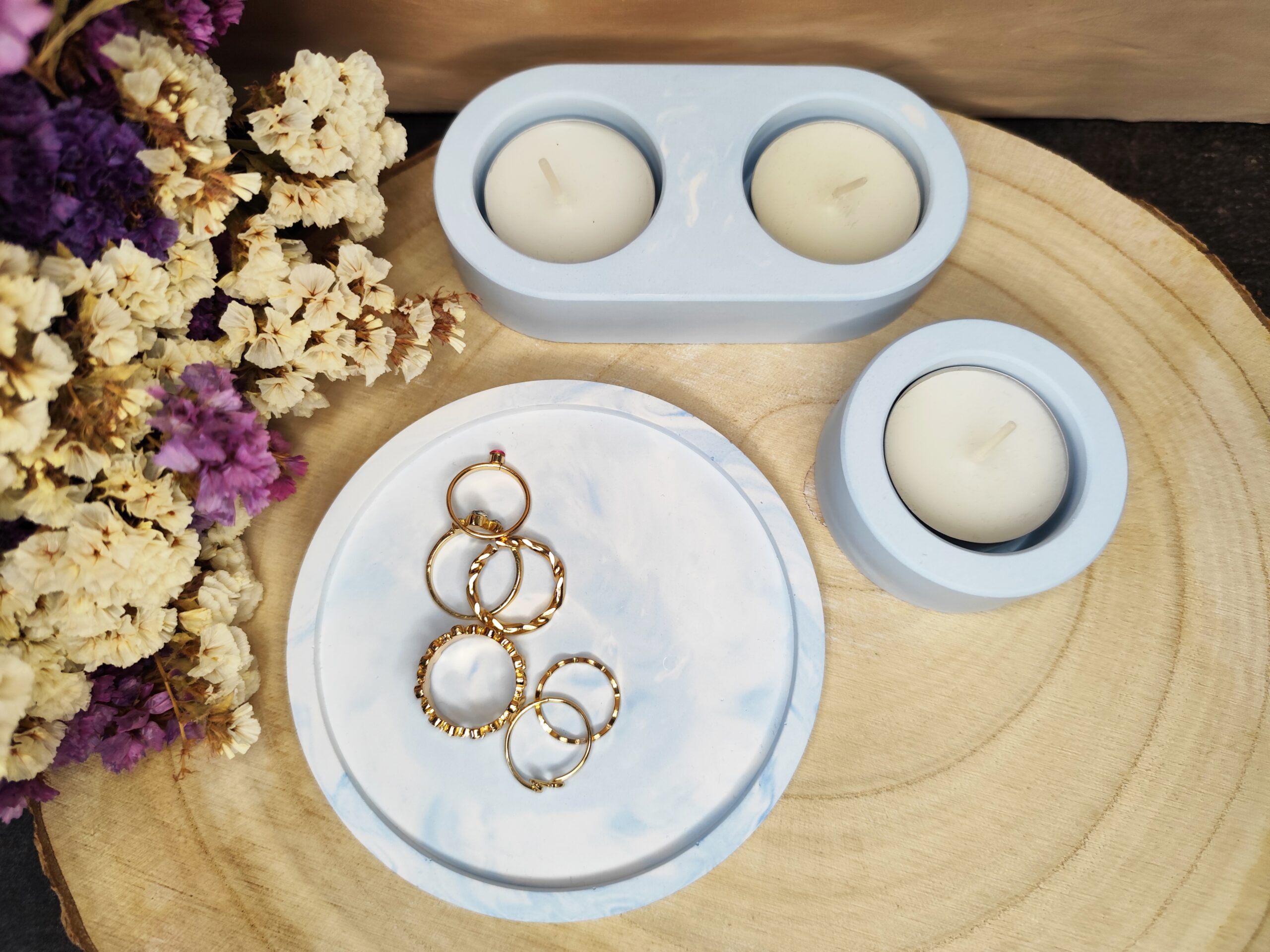 A szett tartalma a két gyertyatartó és a kör tálca!
