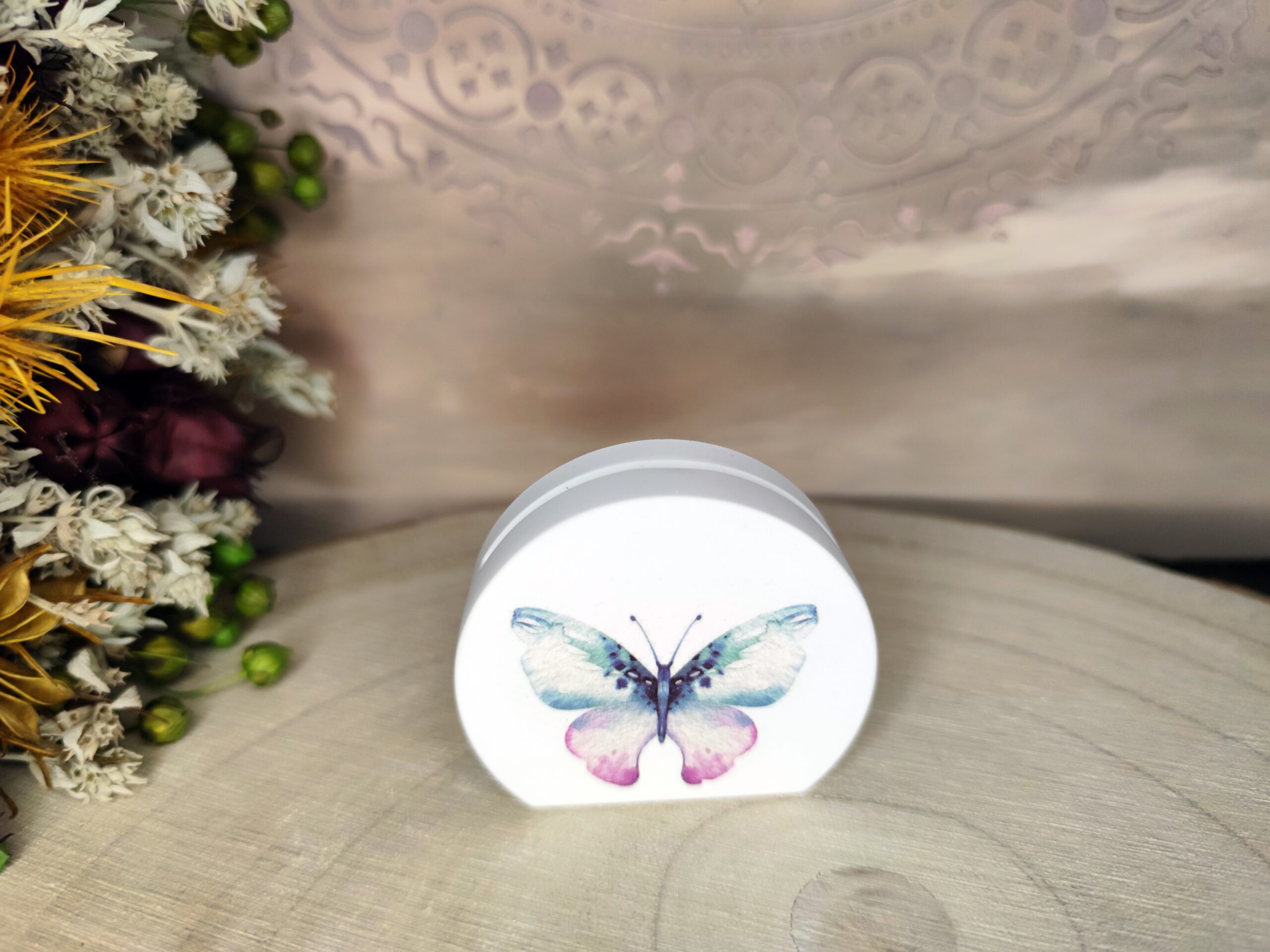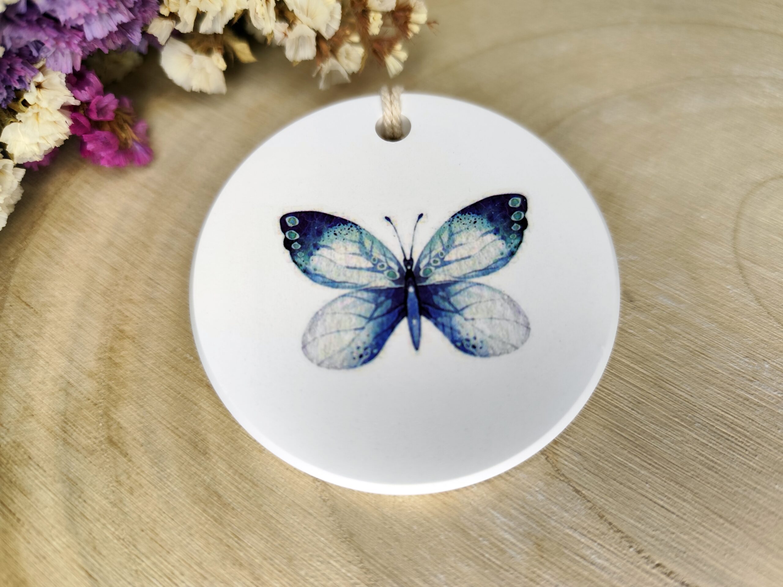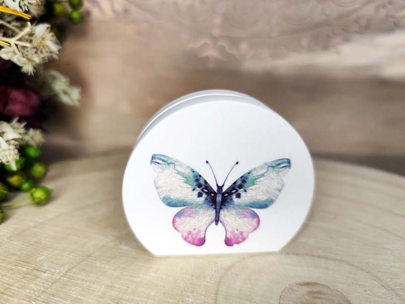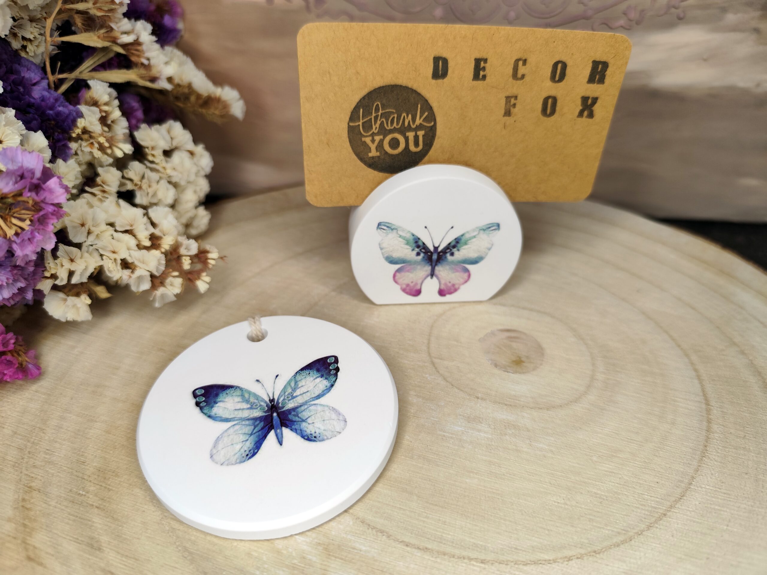 A szett tartalma ez az egyedi pillangós üzenet tartó és akasztós dísz, melyet matricával díszítettem!