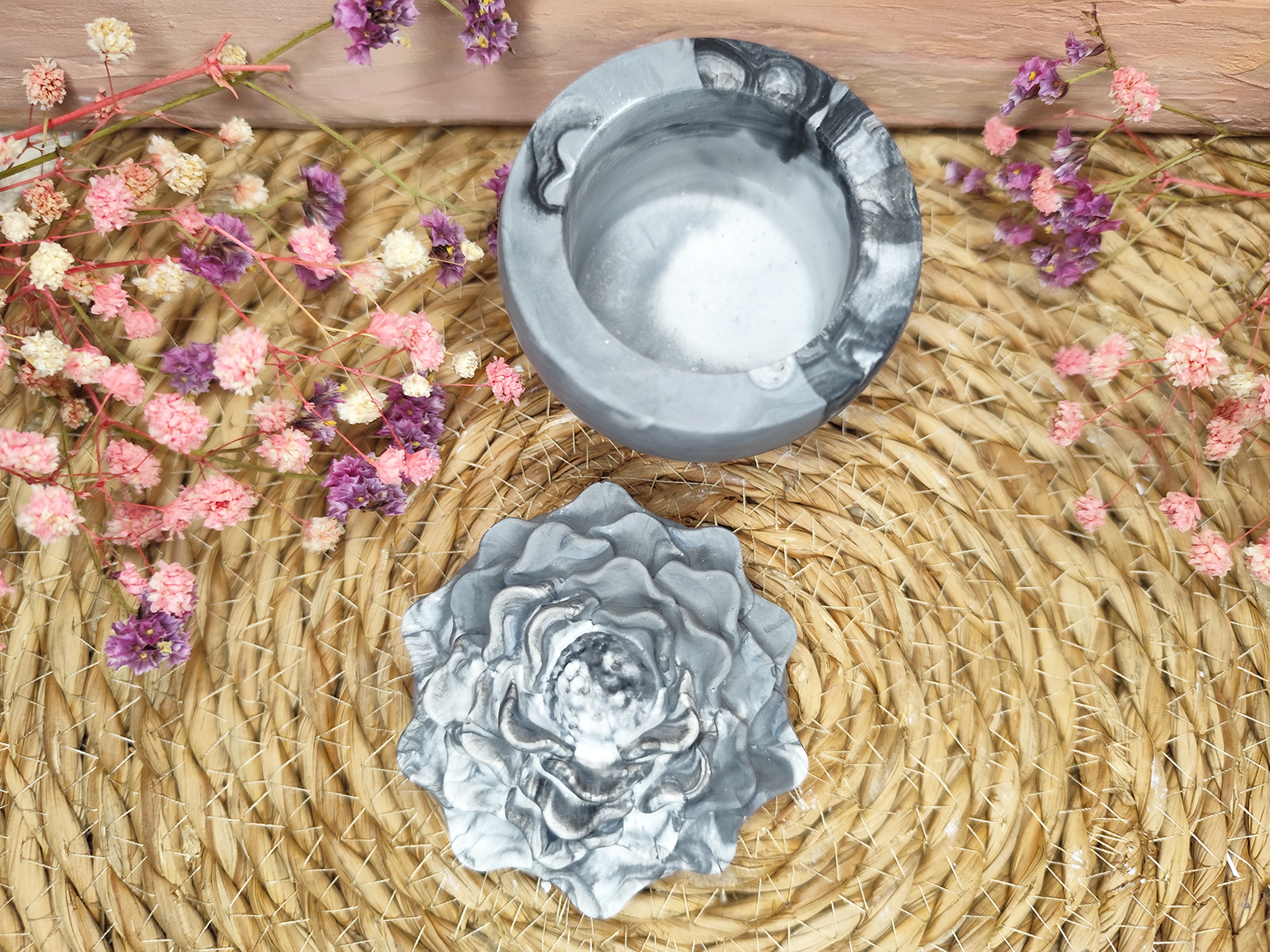 Anyagában színezett, mely igazán egyedire és kissé rusztikusra sikerült!